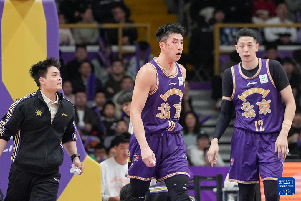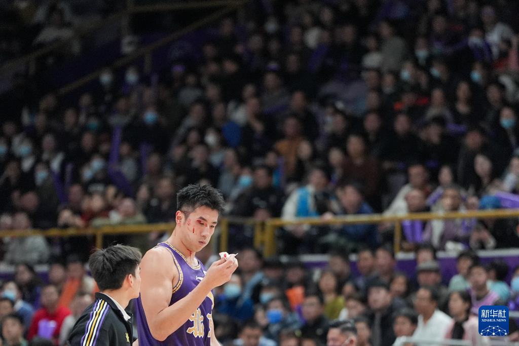 12月13日,北京控股队球员邹雨宸(中)在比赛中受伤。